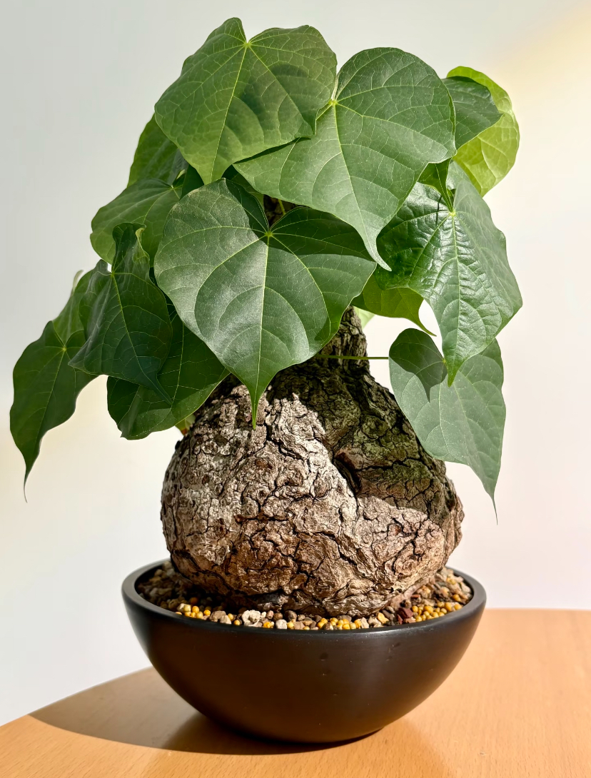 Native to tropical and subtropical regions, Firmiana Colorata is known for its dramatic trunk formation and vibrant foliage display. During its growth phase, the plant produces large, lush leaves that create a stunning canopy effect. As seasons change, it undergoes a fascinating transformation, shedding leaves and revealing its sculptural caudex — making it a living piece of art in any space.